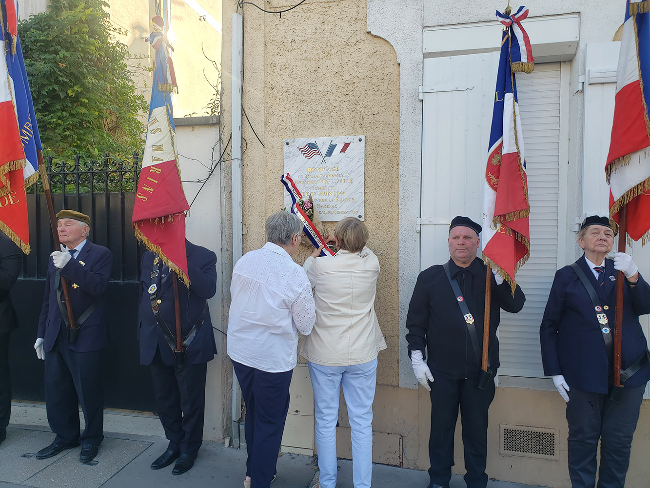 Les élus, les jeunes du CMJ (Conseil Municipal des Jeunes) et les pompiers de la caserne de Colombes/Bois-Colombes étaient présents lors du défilé et des dépôts de gerbes devant la plaque du sergent américain Vigliante et la stèle Jean-Larribot rue Gramme, au monument aux Morts square du maréchal de Lattre-de-Tassigny et au mémorial Charles-de-Gaulle, square Émile-Tricon.