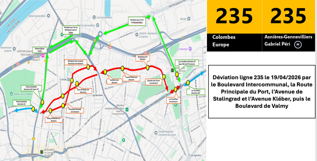 Les lignes de bus 140, 235 et 304 ne circuleront pas dès 7h dans le secteur d’évacuation avec déviation.