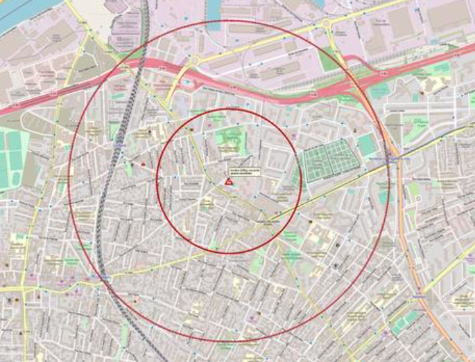 “…Entre les rayons de 450 et 1000 mètres, vivent en temps normal 28 000 personnes.