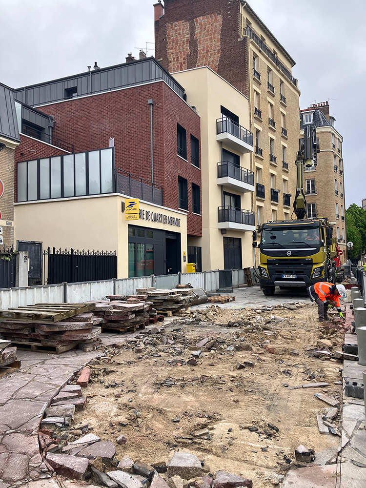Ces travaux servent à la création d’espaces verts et d’accroche-vélos.