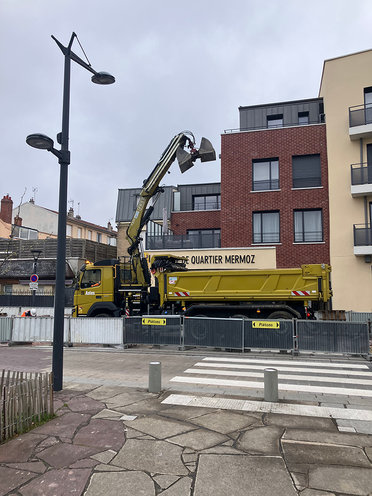 Des travaux de transformation du parvis de la Mairie de quartier Mermoz ont commencé début avril.