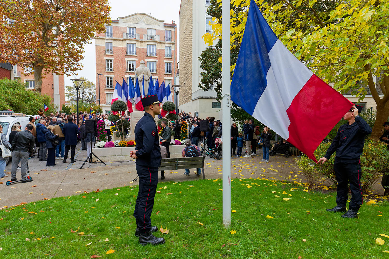 La commémoration s’est déroulée au monument aux Morts du square de-Lattre-de-Tassigny. Mardi 11 novembre 2025, le cortège s’est formé devant l’hôtel de ville, les portes drapeaux, les militaires en tenue, les Anciens Combattants, les enfants des écoles et de la chorale du conservatoire et les élus du CMJ, le Conseil Municipal, et le public.
