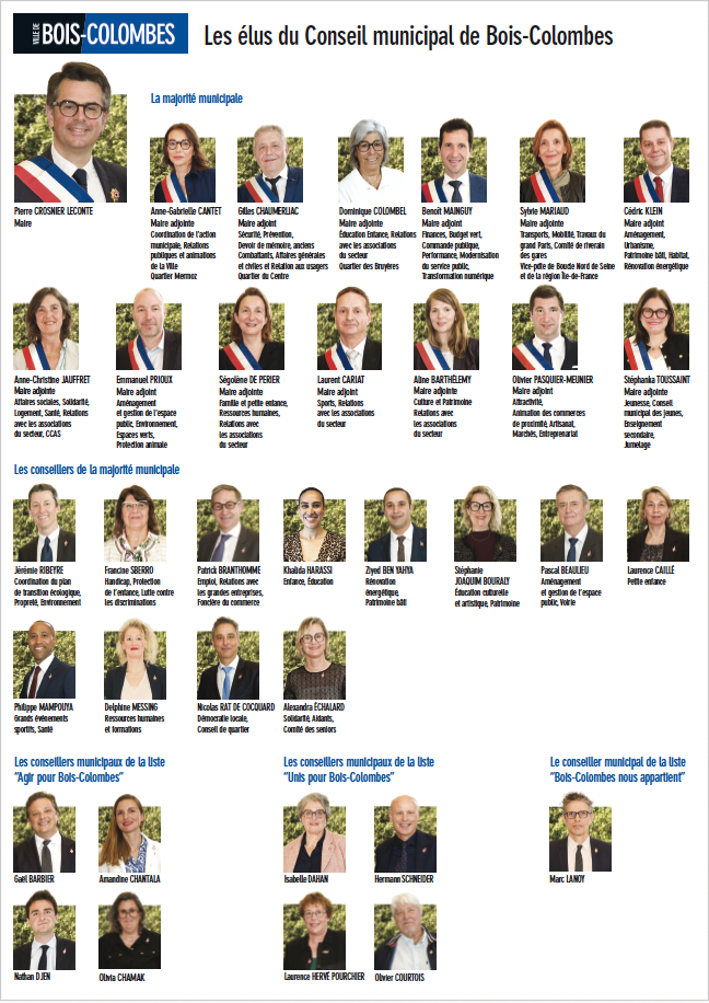 Le Conseil municipal de Bois-Colombes se compose de 35 membres dont 13 adjoints au Maire.