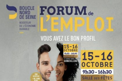 Boucle Nord de Seine organise son forum emploi annuel les 15 et 16 octobre prochains à la Salle des Fêtes de Gennevilliers. Au programme : 200 recruteurs et 2 000 offres d’emploi !