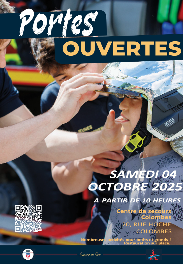 Sam. 4 octobre dès 10h Rendez-vous PORTES OUVERTES DU CENTRE DE SECOURS DE COLOMBES - pompiers Portes ouvertes du centre de secours des pompiers de Colombes/Bois-Colombes Samedi 4 octobre 2025 dès 10h 20, rue Hoche à Colombes Tout l'agenda