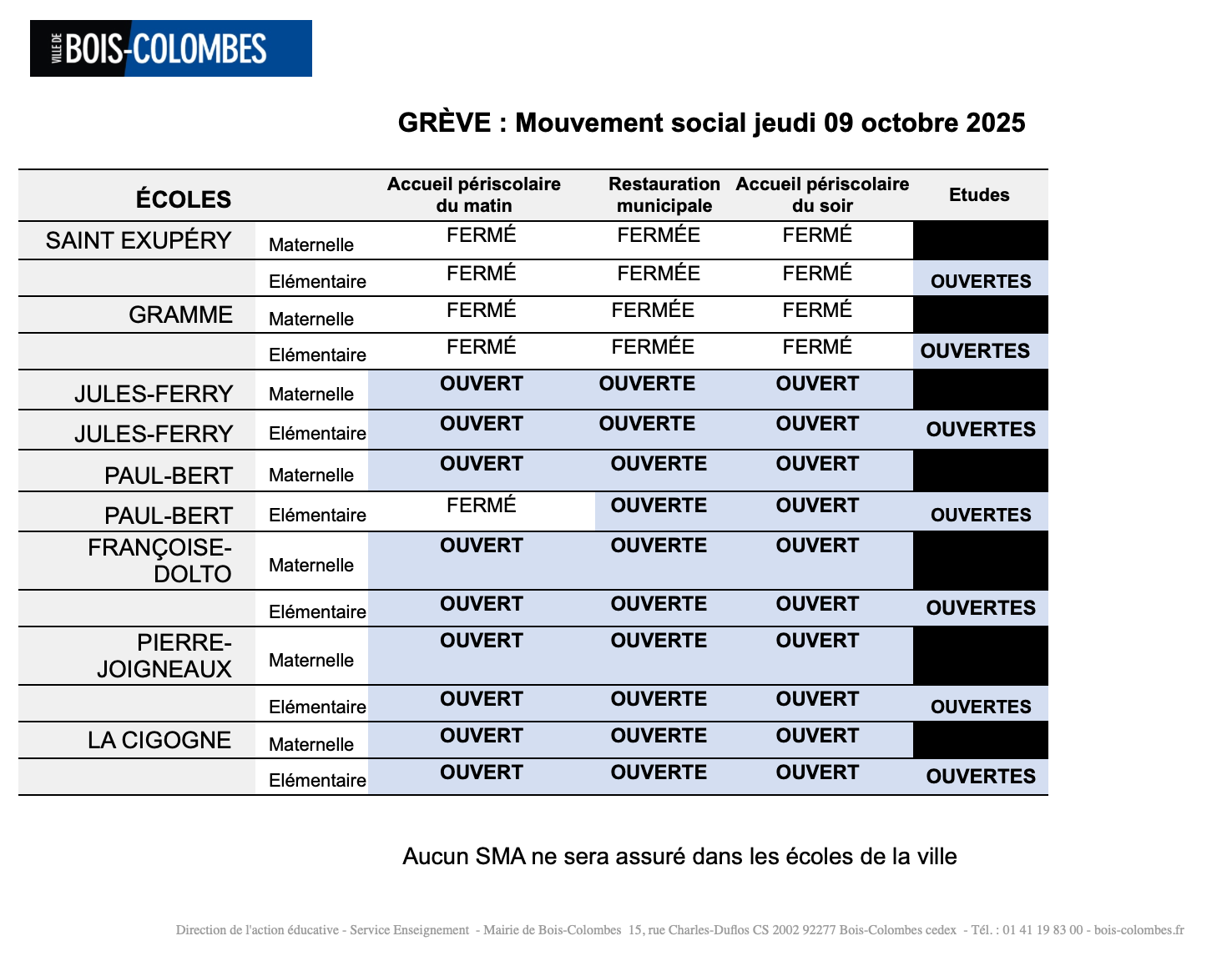 Un mouvement de grève national est prévu jeudi 9 octobre, provoquant des perturbations au sein des établissements scolaires sur les temps périscolaires.