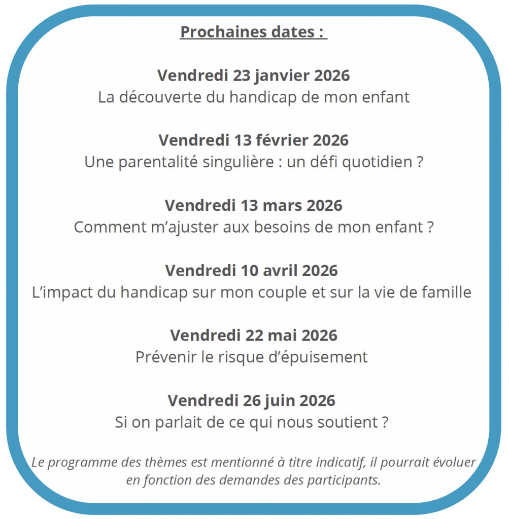 Le Centre Communal d’Action Sociale propose aux parents d’enfants en situation de handicap un rendez-vous dans un lieu convivial d’accueil et d’accompagnement : rencontre, échanges, débats…